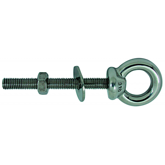 Ring bolt in AISI 316, stainless steel eye bolt complete with nut and washer.