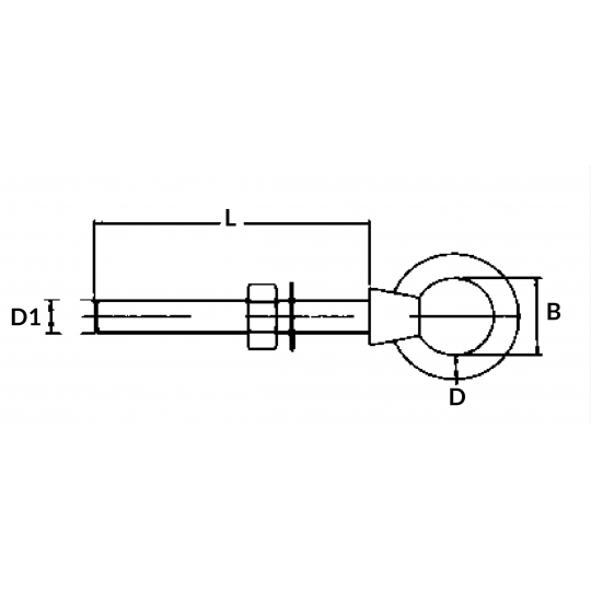 Rrufe unaze në AISI 316, bulon me sy çelik inox i kompletuar me arrë dhe rondele.