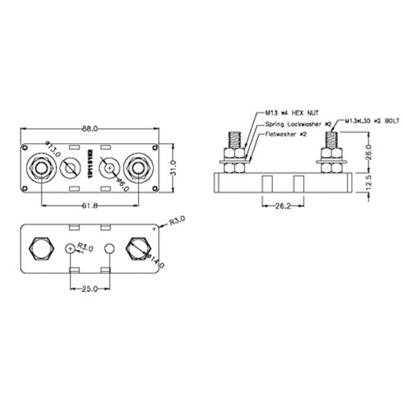 Base portafusibile per fusibili tipo ANL max 500A. Corpo in resina anti-fiamma, contatti in ottone. Completa di calotta in policarbonato trasparente per protezione contro contatti accidentali.