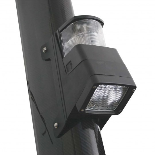 Masthead light and deck spotlight combined in a single robust housing made of UV-resistant and impact-resistant plastic. BAY15d 12V/10W and H3 12V/55W bulbs included. The arms of the housing flex to fit the mast. The masthead light and deck spotlight are wired separately. Suitable for boats less than 20 m in length.