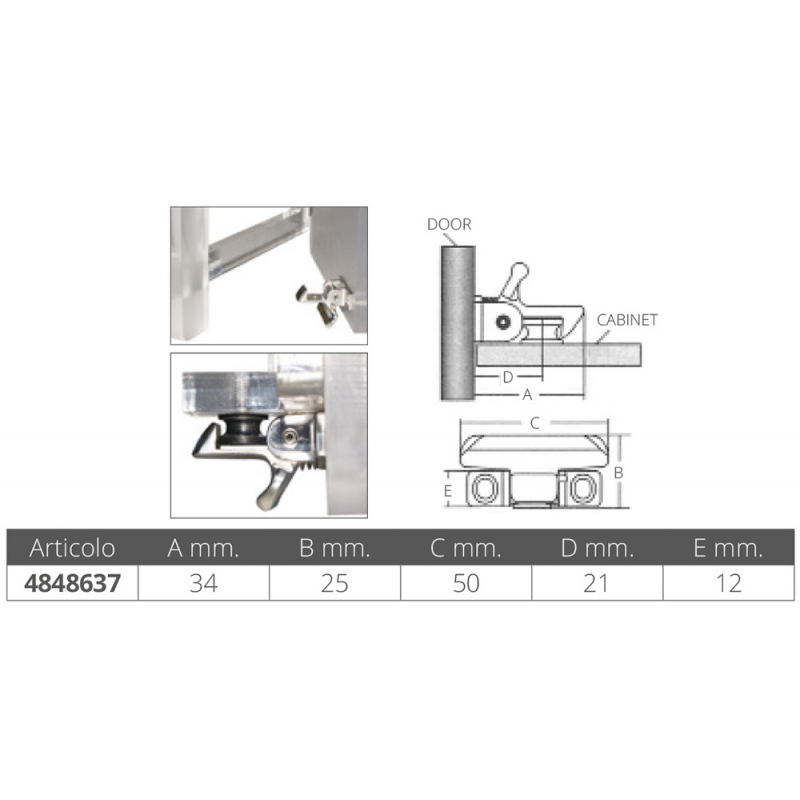 Chiusura automatica in acciaio inox AISI 316, ideale per installazioni non a vista su ante e sportelli, la chiusura infatti rimane dietro all’anta per un effetto pulito e moderno. Dotata di foro di marcatura incorporato per garantire il corretto allineamento durante l’installazione. Dimensioni mm. 50x40x25.