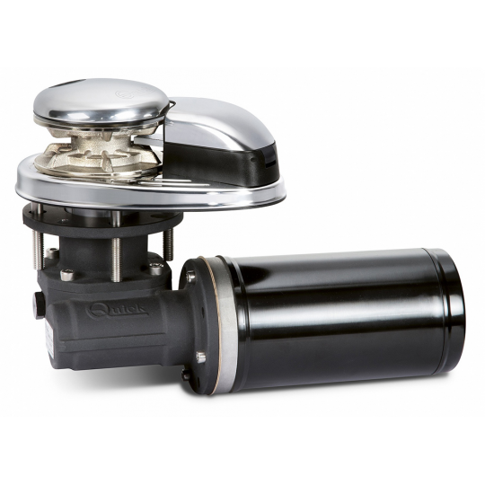 Vertical anchor windlass with AISI 316 stainless steel base, without casing, with provision for chain counter sensor (not included), system manual free fall of the chain, inspection hatch, sealed motor, gearbox in anodized aluminum. Complete with control box and handle.