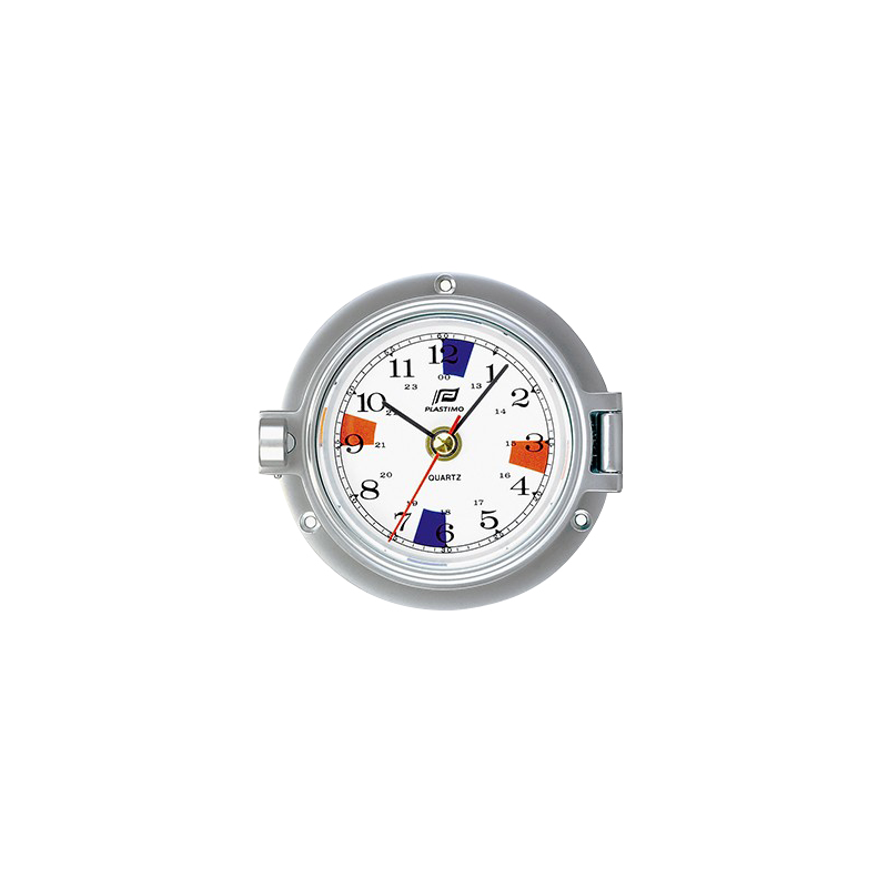 Orë prej alumini me krom mat, me mekanizëm kuarci me zonë heshtjeje radioje, xham mineral i sheshtë.
