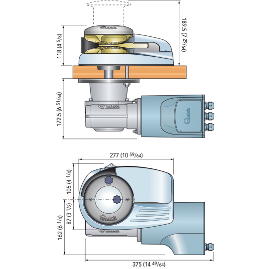 lift system. Supplied with pressure lever and inspection lid, IP67 watertight motor and anodized aluminium gearbox.