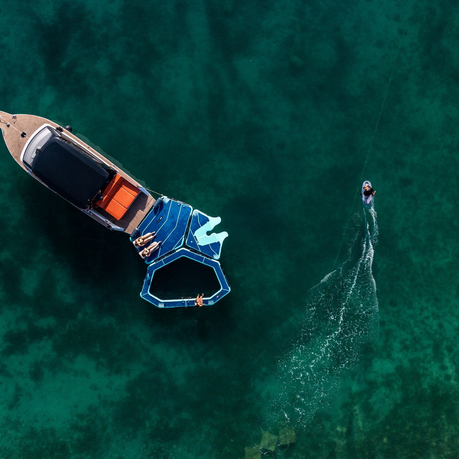 Pas një glidimi mbi ujë me foil-in tuaj, Infinity Foil Station ofron vendin perfekt për të ankoruar, pushuar dhe për të zbritur lehtësisht nga bordi. E dizajnuar posaçërisht për vozitësit e foil-it, forma e saj e hapur lejon afrim të lehtë dhe pozicionim të sigurt, duke mbrojtur pajisjet tuaja nga dëmtimet. Konstruksioni i qëndrueshëm drop-stitch dhe deck-u EVA 5 cm i trashë dhe anti-rrëshqitës sigurojnë kapje dhe komoditet të shkëlqyer, edhe në kushte me valë. E pajisur me unaza të shumta D-ring dhe rripa Velcro, mund të lidhet me platforma të tjera Infinity ose të përdoret si stacion i pavarur. E lehtë, e qëndrueshme dhe e shpejtë për tu instaluar, ideale për jahte, dok-e ose shkolla foil. E ndërtuar për të zgjatur dhe e lehtë për tu ruajtur — mbështetur me garanci 3-vjeçare për besim afatgjatë.