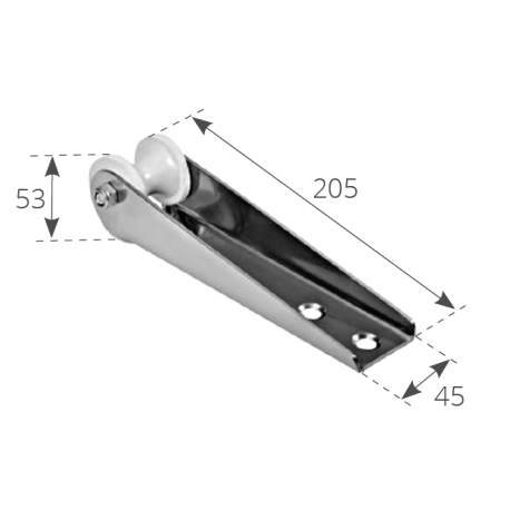 Musone in acciaio Inox con puleggia in nylon, per piccole imbarcazioni Dim. mm. 205x45x53H