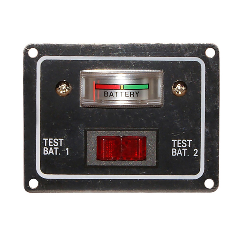 Pannello in lega leggera verniciato nero con Indicatore analogico. Permette di verificare lo stato di due batterie separate o di due gruppi batterie separati. Alimentazione 12V, fissaggio tramite 4 viti. Dimensioni mm. 64×83
