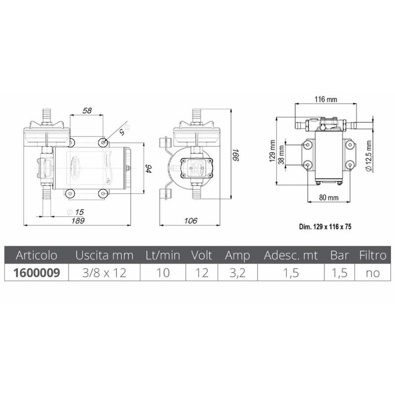 Pompë vetë-mbushëse, me ingranazhe PTFE. I përshtatshëm për spërkatje, transferim uji (maksimumi 40 °), naftë (pika e ndezjes 38 °), antifriz.
