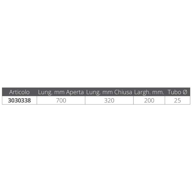 Shkallë prej çeliku inox AISI 316, teleskopike dhe e palosshme. Zbatohet në tubularin e varkës së fryrë. E përkryer për t’u ruajtur në dollapë të vegjël falë gjurmës së saj të vogël.