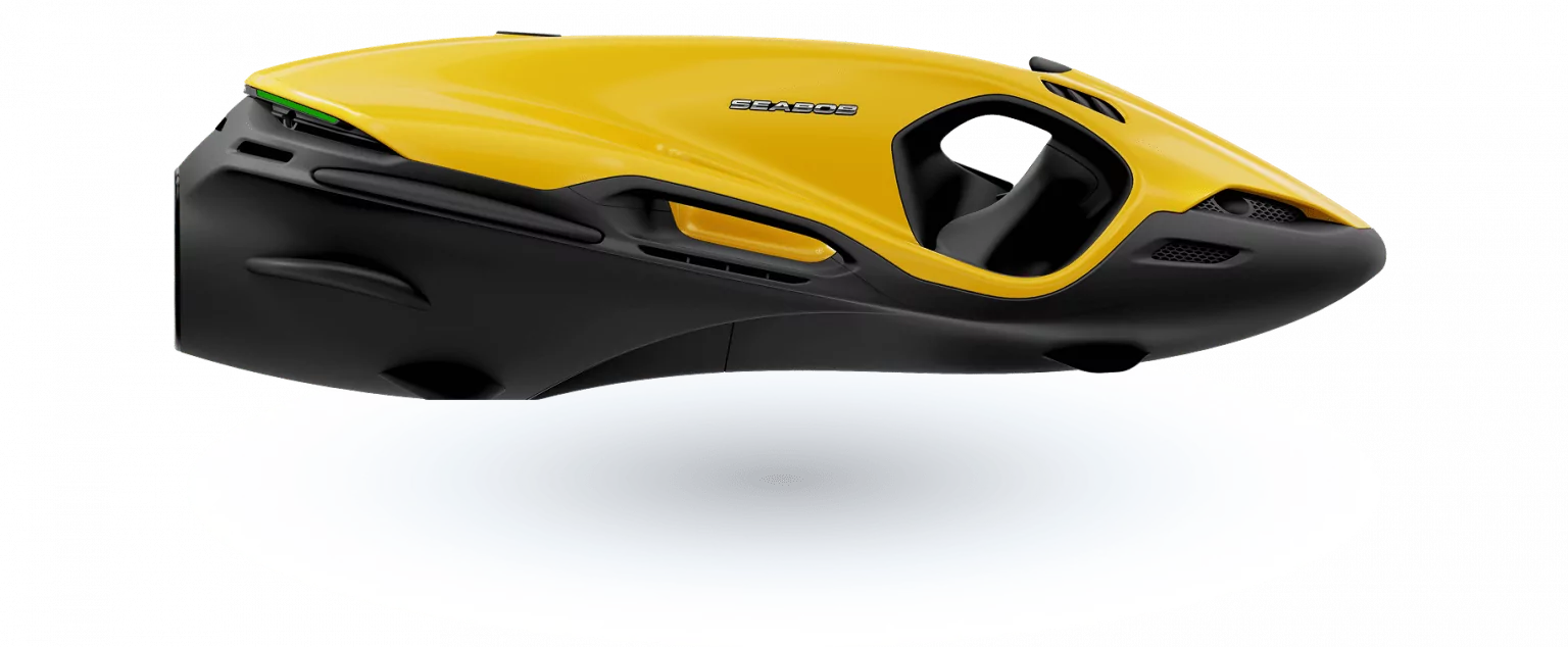 The SEABOB F9 boasts a digital thumb-operated accelerator to adjust the infinitely variable engine power. A switch sensor lets you switch between Normal and Dive mode. In Dive mode, the performance is much more sensitive for comfortable dives. For high performance on the water, simply activate the Sport mode. The Sport mode generates maximum engine power, increases the driving experience and creates unique driving fun with the SEABOB F9.