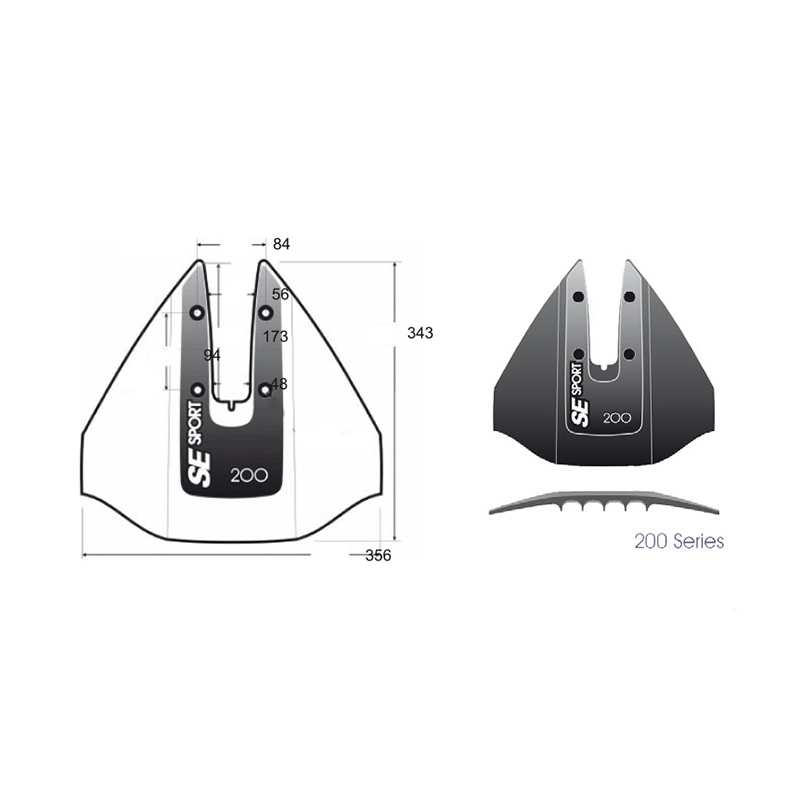 Spoiler për motorët jashtë dhe sterndrive, i bërë nga polimer polipropileni i zi. Aplikohet në pllakën kundër kavitacionit me 4 bulona dhe dado (të përfshira) Ka këto përparësi: Rrëshqitje e shpejtë. Redukton në mënyrë drastike kohën e rrëshqitjes. Profili i gjysmëhënës kanalizon rrjedhën e ujit, duke lejuar kontroll më të mirë, vozitje më të sigurt dhe rehati më të mirë në bord. Një avantazh edhe për skiatorin që tërhiqet dhe mbahet jashtë ujit. Kursimi i karburantit. Rrëshqitja e shpejtë dhe ulja e rrotullimeve në minutën e motorit gjatë rrëshqitjes reduktojnë konsumin e karburantit. Redukton shpejtësinë e rrëshqitjes. Ju lejon të qëndroni në aeroplan me një shpejtësi më të ulët lundrimi dhe në gjuajtje të tërheqshme. Forma elegante e patentuar. Është më performanca në testet e kryera. Profili i ulët ofron më pak zvarritje në çdo pozicion prerjeje për shpejtësi më të madhe. SE Sport do të mbajë shpejtësinë maksimale më mirë se çdo stabilizues tjetër në treg. Eliminon kavitacionin. Kur ndryshon drejtimin, SE Sport redukton ose eliminon plotësisht çdo humbje të efikasitetit të helikës. Ekskluzive turbo trac. Rrit stabilitetin dhe kontrollin e drejtimit. Do të vini re një ulje ose mungesë të rrotullimit, hapit dhe trajtimit më të mirë të dhënë nga rrjedha e kontrolluar e ujit. Ndihmon shumë në lëvizjet me shpejtësi të ulët të bykëve me V të theksuar.