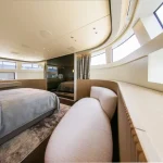 - Cabins: 4 to 5 staterooms (Main Deck Master Suite + 3 or 4 Guest Cabins on Lower Deck), all en-suite.