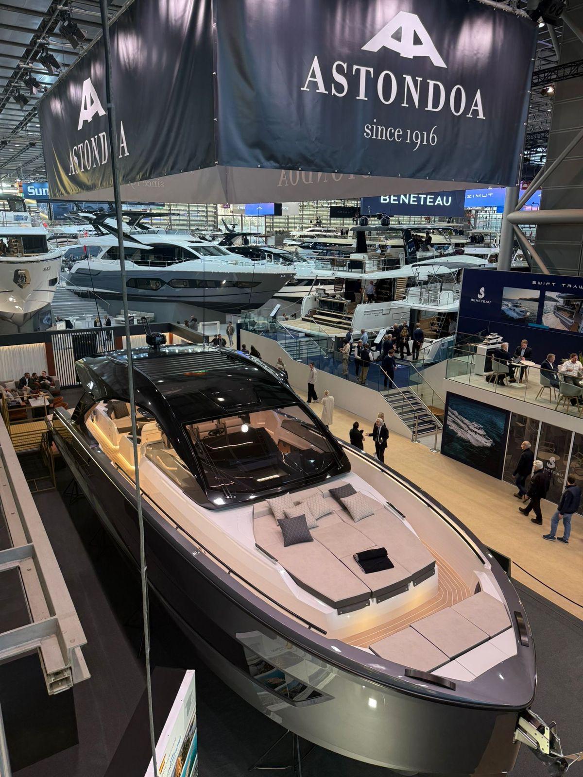 The Spanish shipyard’s sportiest line of yachts will welcome a new model in the medium-length segment, which will expand the brand’s impressive Coupe range, setting a new milestone in high-end sports yachting. With a length of 15.52 metres, the new 577 Coupe is positioned between the best-selling 377 Coupe and the exclusive limited edition 677 Coupe. The new model will fulfill Astondoa’s desire to offer new formulas to satisfy sports boating enthusiasts who are looking for their own personal and unique experience, in total connection with the sea, without renouncing luxury and comfort on board at the highest level. A combination of sporty lines and elegance, the new yacht follows the aesthetics of its predecessors in the Coupe range, the most daring and original of the Astondoa factory. The 577 Coupe reproduces the distinctive elements of this sporty line, such as the inverted bow, the aluminium structure of the cabins or the stepped stern.