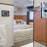 This meter ( ) sport yacht is built with a GRP planing hull defined by its striking inverted bow—a hallmark of the Coupé range—and clean, assertive lines. A strong focus is placed on habitability, with sensational interior capacity accommodating multiple layouts and a fluid connection to the sea. The superstructure features expansive, floor-to-ceiling glass surfaces and a retractable sunroof that opens the main deck saloon to the air. This versatility, combined with the high customization options for the interior finish and layout (including the galley’s position), ensures the yacht feels both exclusive and intensely practical.