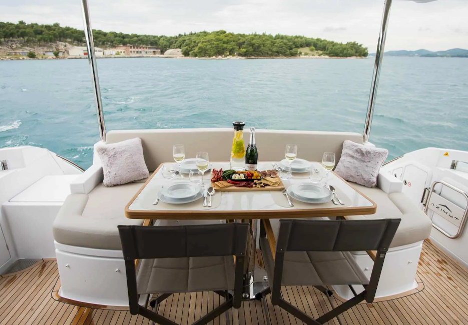 Discover the Adriatic coast with the luxurious Azimut 55 Fly motor yacht. It offers space for eight guests in four air-conditioned cabins with modern TV and Bose sound system. An experienced crew consisting of a skipper will ensure your comfort. Look forward to exciting water toys and unforgettable luxury holidays in Croatia.