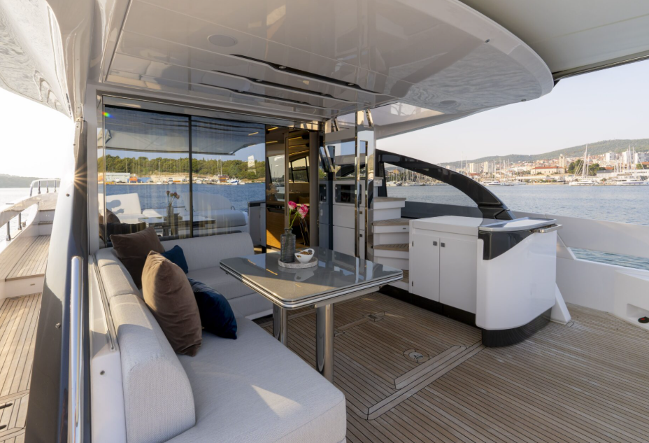 Enjoy a luxurious cruise along the Adriatic coast aboard the elegant Azimut S7 Fly motor yacht offers perfect comfort for eight guests, accommodated in four modern, air-conditioned cabins with TV and premium audio systems. The crew, consisting of an experienced captain and hostess, will cater to your every need. For water sports enthusiasts, the yacht is equipped with a Williams Jet Tender and a Sea-Doo Spark, both stored in the garage , ready for unforgettable adventures on the water. Available for charter, this yacht provides a unique luxury cruising experience, whether you’re seeking relaxation in crystal-clear waters or excitement on the waves. Enjoy the perfect blend of elegance, comfort, and adrenaline at every turn.