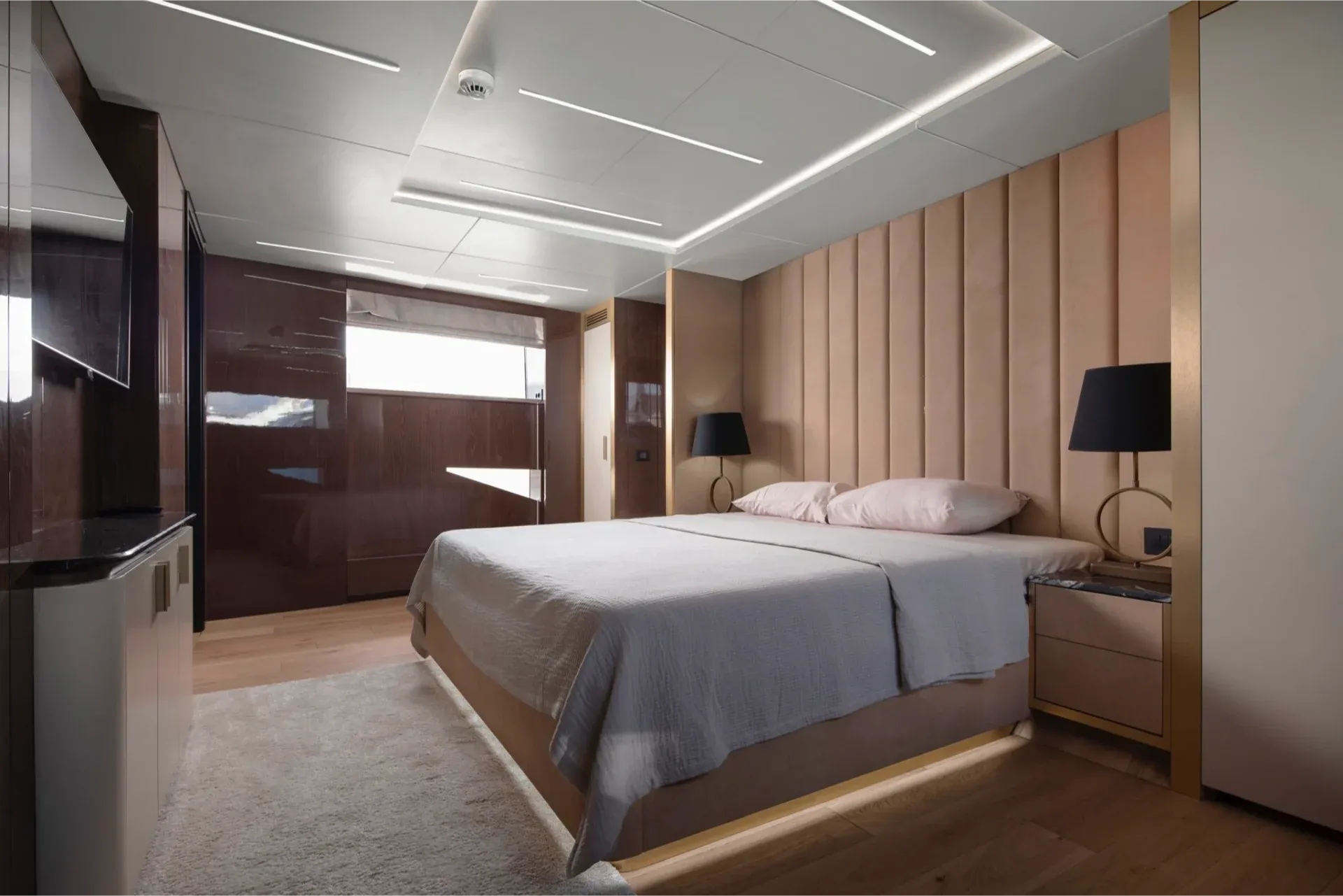 - Cabins: 5 staterooms (Multi-Master Configuration: up to 3 Master/VIP Suites + 2 Guest Cabins), all en-suite.