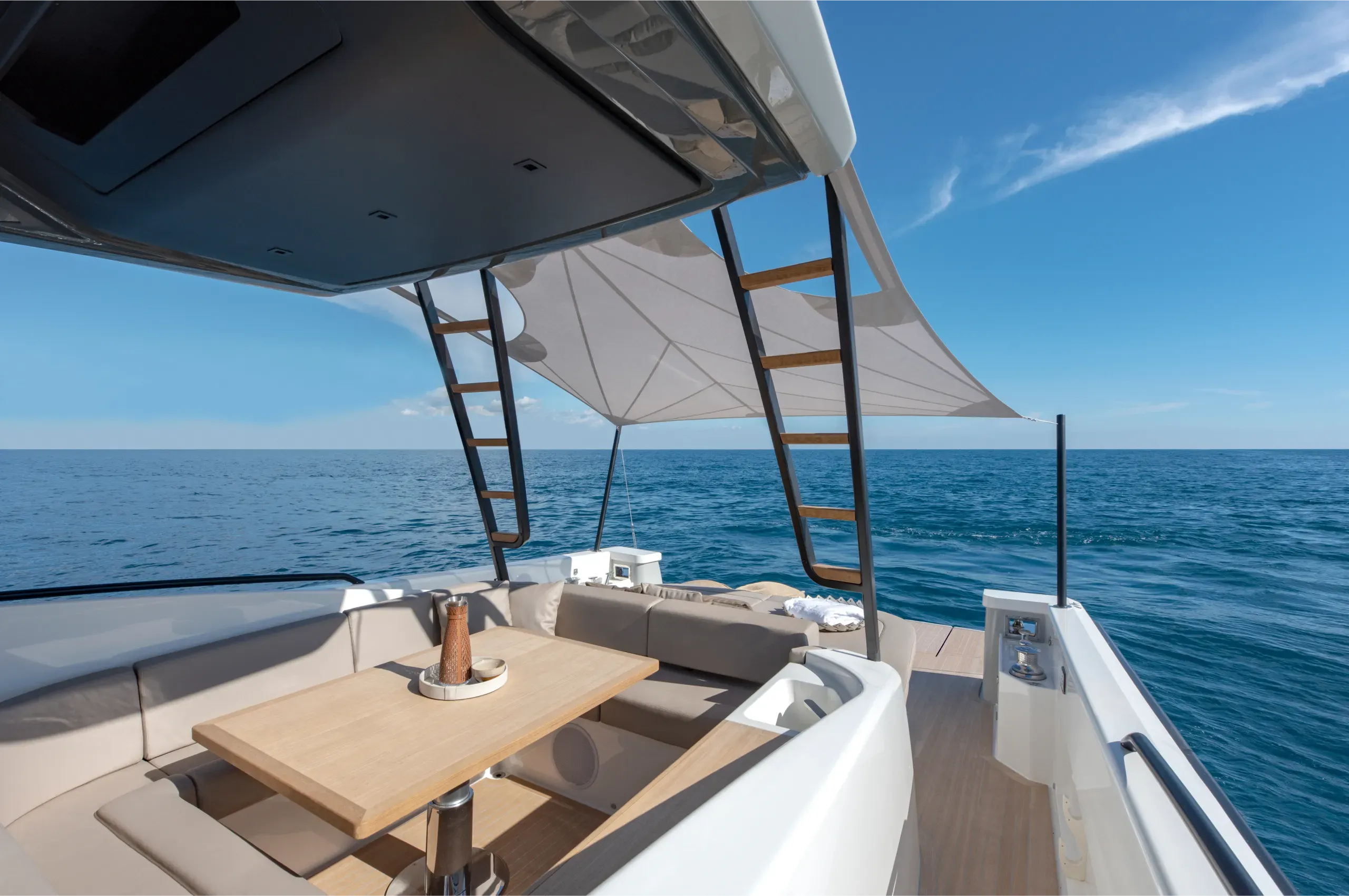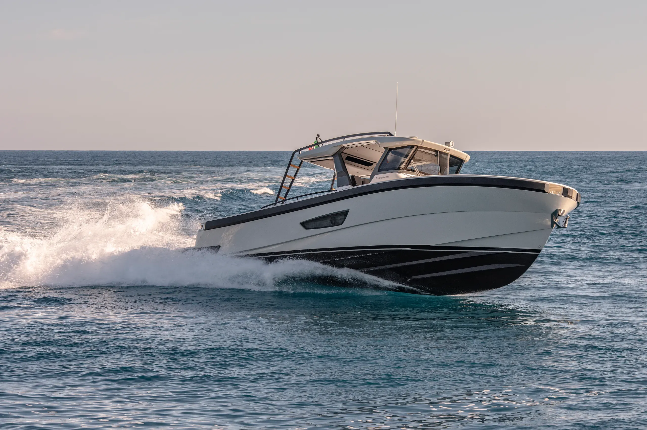 The Bluegame BG42 is the most compact yacht in the brand’s Sport Utility Boat (SUB) series, renowned for condensing the innovative philosophy and robust features of its larger siblings into a highly manageable -meter platform. Unwilling to be defined by a single category, the BG42 is a dynamic blend of a walk-around, open boat, day-cruiser, and chase boat. It appeals to owner-operators who seek uncompromising style, high performance, and exceptional seaworthiness for everything from thrilling day trips to comfortable weekending.