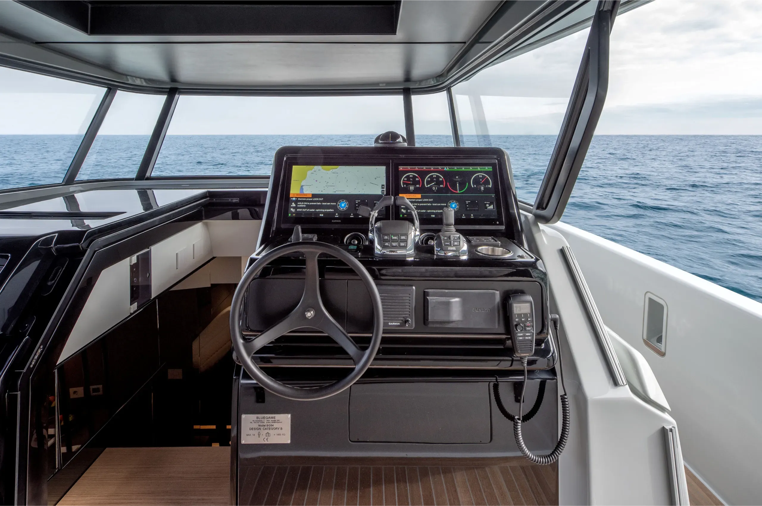 - Hull Material / Class: Fiberglass (GRP) / CE Category B (Offshore)