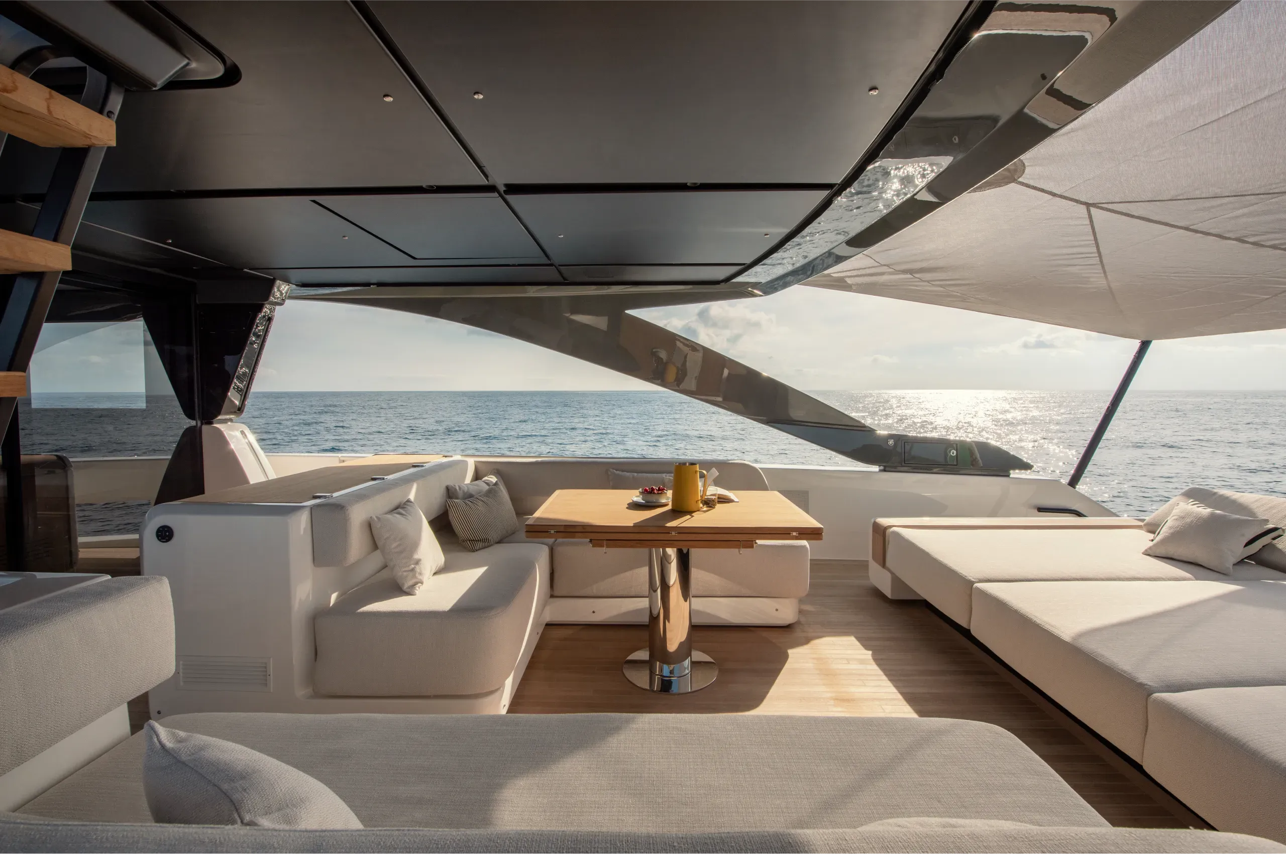 The Bluegame BG74 is the undisputed flagship of the original “BG” range, representing a successful fusion of the BG walk-around concept and the innovative internal volume of the BGX crossover series. Hailed as the “only true open yacht of this size,” the -meter BG74 is designed to deliver a unique cruising experience by offering vast open-air spaces across three levels, superior seaworthiness from its performance hull, and the sophisticated luxury of a true Sanlorenzo Group product.