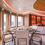 - Exterior: Large swim platform, spacious tender garage storing two m tenders, and multiple alfresco dining zones.