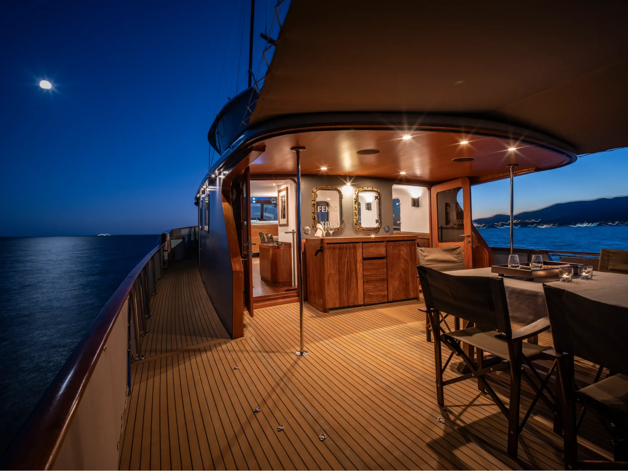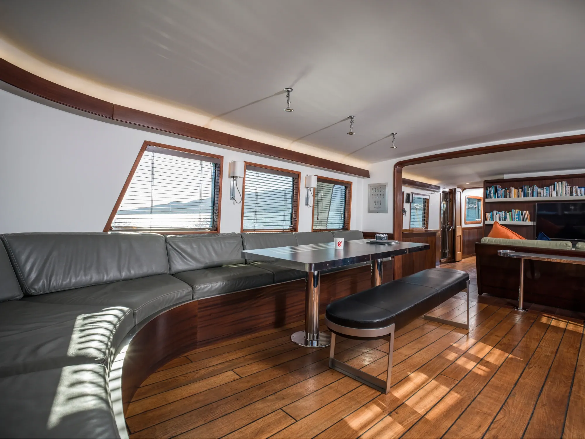 The Custom Motorsailer 29m is a unique, historic vessel built by Richard Iron Works that has been fully rebuilt and modernized for luxury charter. Originally commissioned in 1962 as an America’s Cup support vessel, this yacht combines a robust steel hull with the timeless, subtle luxury of an interior styled by Christian Liaigre. It is an excellent choice for guests seeking a yacht with deep heritage and impressive long-range cruising capability.