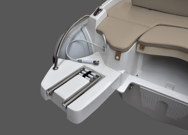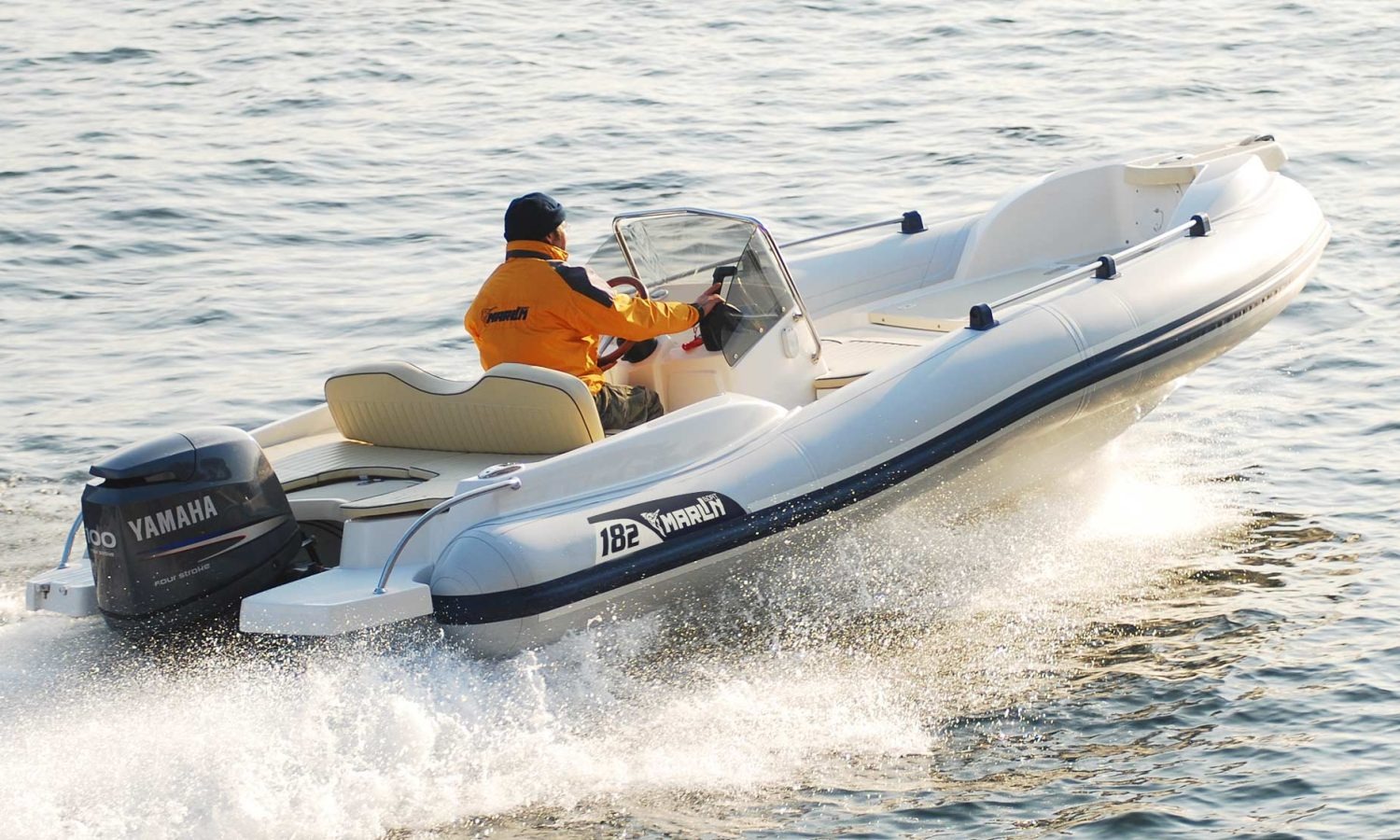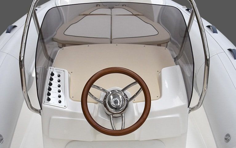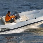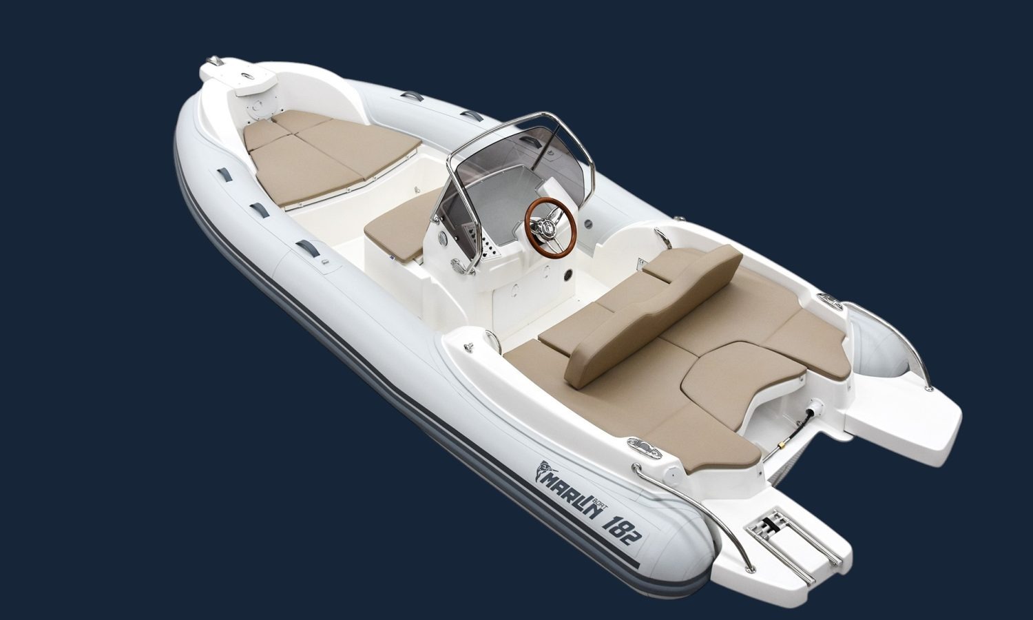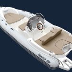 Despite its compact size (5.55m LOA), the Marlin 182 is engineered with a triple G.R.P. hull moulding and high-quality Hypalon-Neoprene tubes, ensuring safety and a responsive, stable ride. It is certified for up to 8 people (CE Category C) and can be powered with up to 115 HP, delivering thrilling performance relative to its size. The deck is thoughtfully designed with a central console and spacious areas, including an extension kit for the bow to create a large sunbathing area. Standard equipment ensures essential usability, including navigation lights, a complete cushion set, and a fresh water tank with a shower.