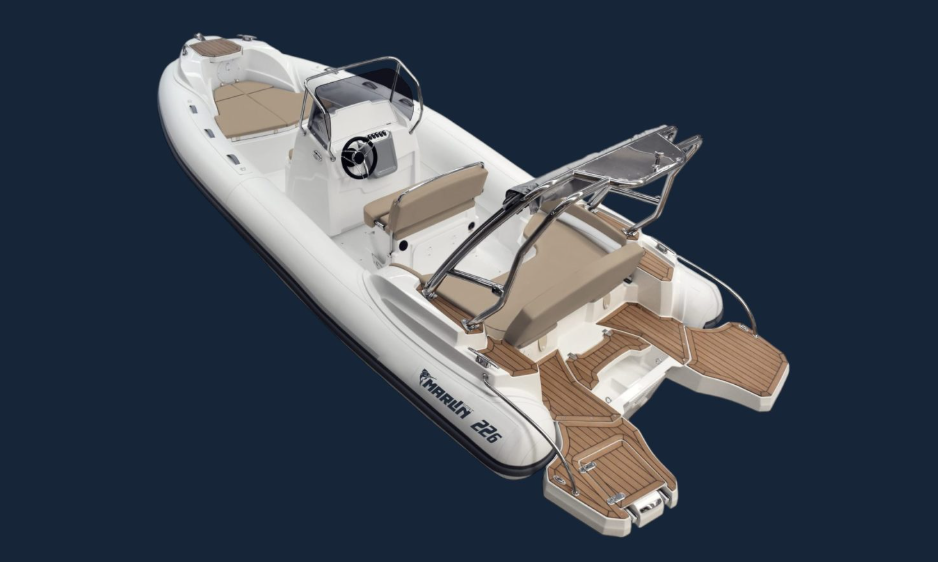 Marlin 226 is the perfect RIB for those seeking refined lines, high-quality finishes, and strong performance, without sacrificing the practicality of a compact boat.