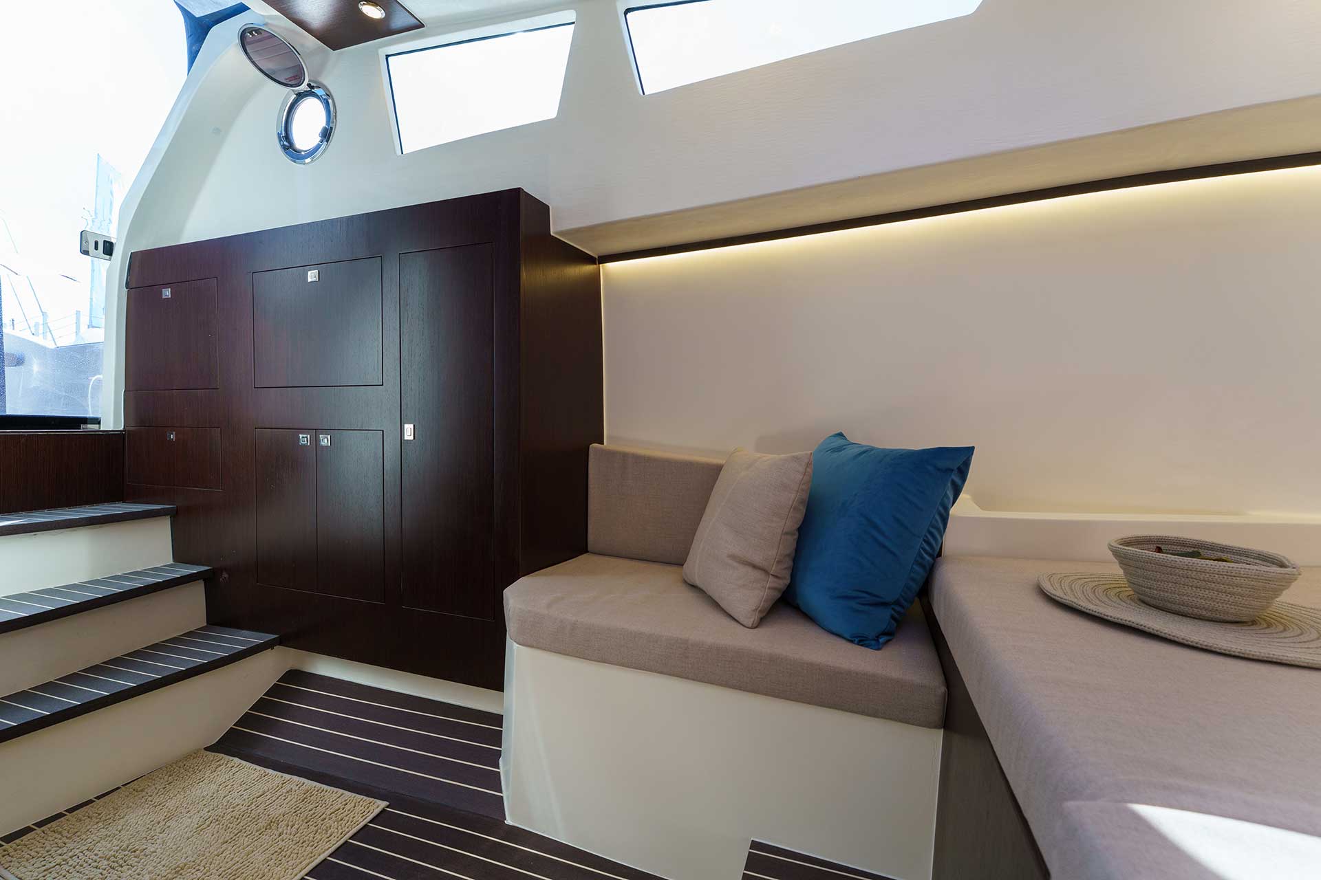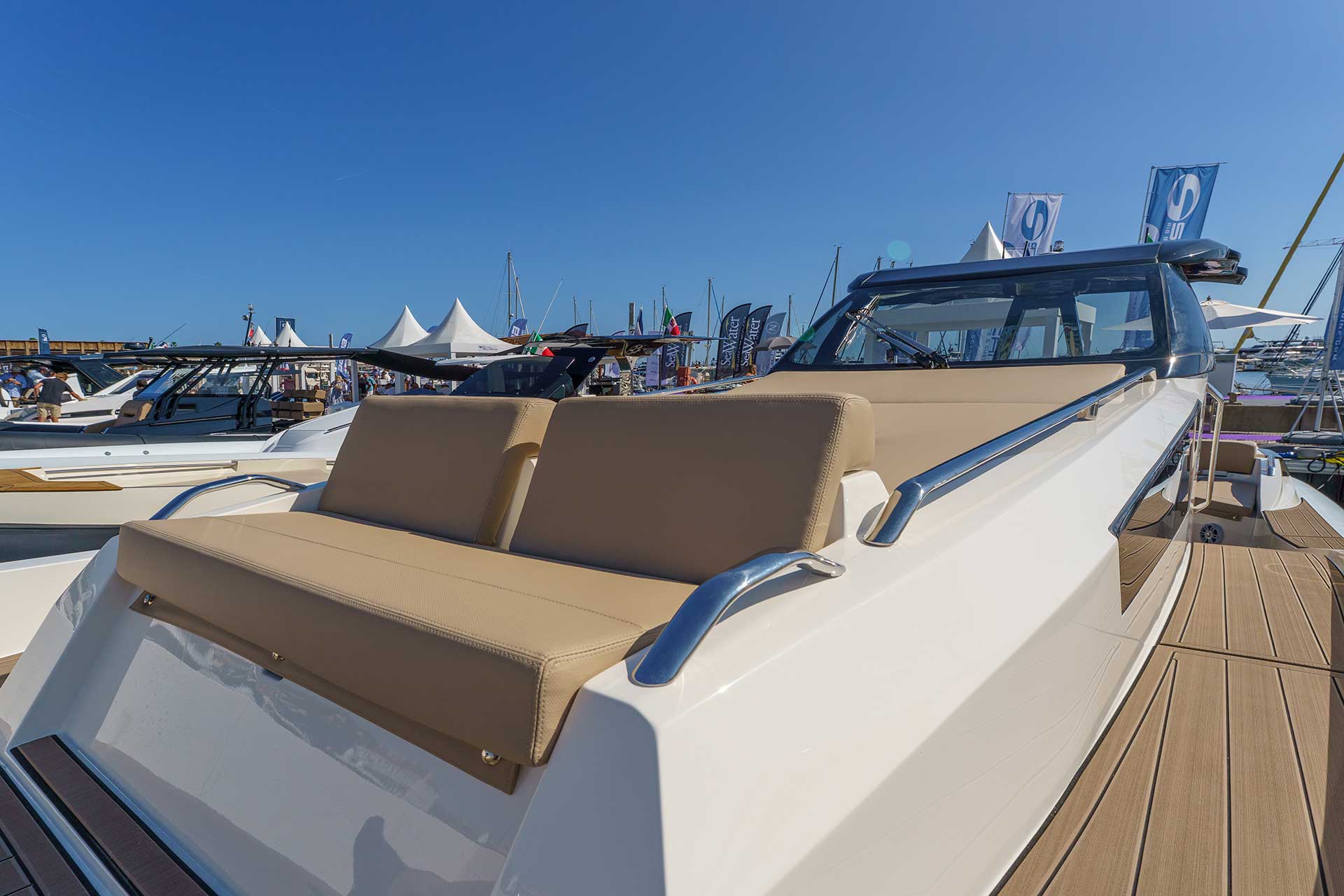 The inboard version is decidedly aggressive and the desire to run, power and solidity is immediate. Two large separate sundecks provide functional access to the sea. Console with three seats and mighty hard top, below deck the attention to detail and great care leave nothing to chance, a layout with refined atmosphere. Spaces on board, sleek lines with fine finishes and maximum comfort. A true jewel of the sea, a flagship that leaves you breathless, exclusive and harmonious lines to enjoy unique days at sea.