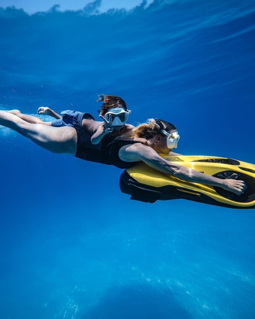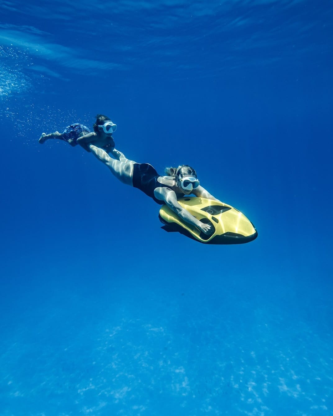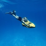 The SEABOB F9 boasts a digital thumb-operated accelerator to adjust the infinitely variable engine power. A switch sensor lets you switch between Normal and Dive mode. In Dive mode, the performance is much more sensitive for comfortable dives. For high performance on the water, simply activate the Sport mode. The Sport mode generates maximum engine power, increases the driving experience and creates unique driving fun with the SEABOB F9.
