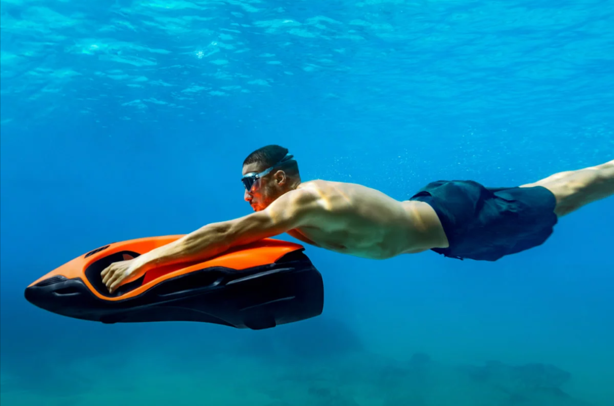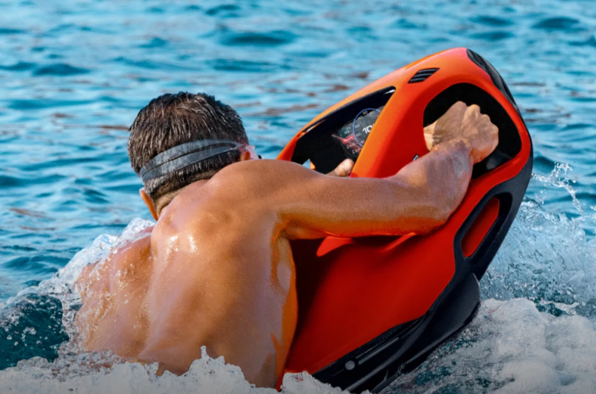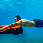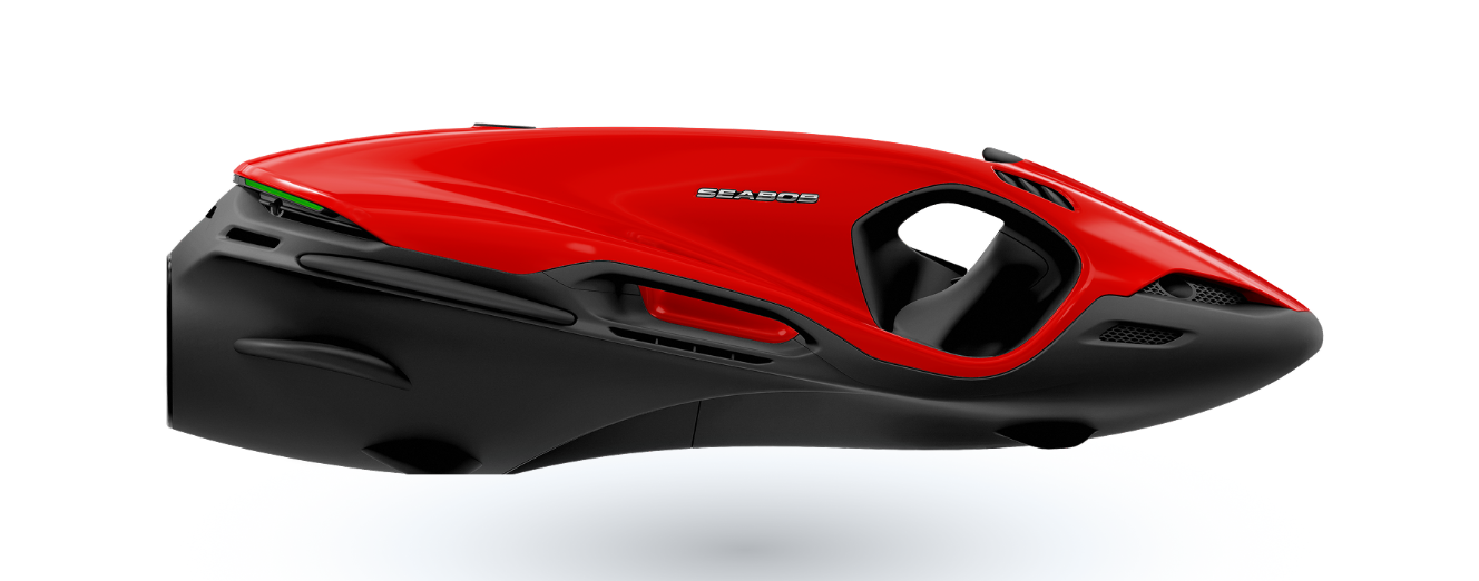 The SEABOB F9 boasts a digital thumb-operated accelerator to adjust the infinitely variable engine power. A switch sensor lets you switch between Normal and Dive mode. In Dive mode, the performance is much more sensitive for comfortable dives. For high performance on the water, simply activate the Sport mode. The Sport mode generates maximum engine power, increases the driving experience and creates unique driving fun with the SEABOB F9.