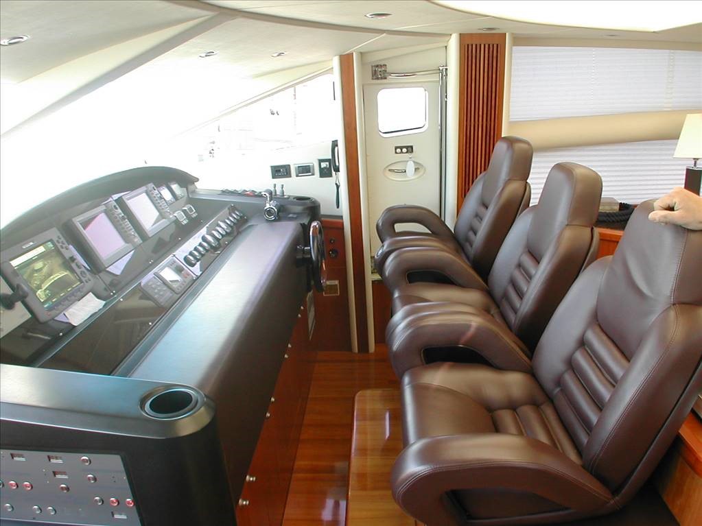 Rudder angle indicator, Radar antenna, Compass, Electronic engine control, On-board computer, Display, Depth sounder, GPS (Furuno Multidisplay colour chart plotter), Autopilot, Plotter with GPS antenna, Radar (Furuno 48 mg with anti-collision system), VHF radio.